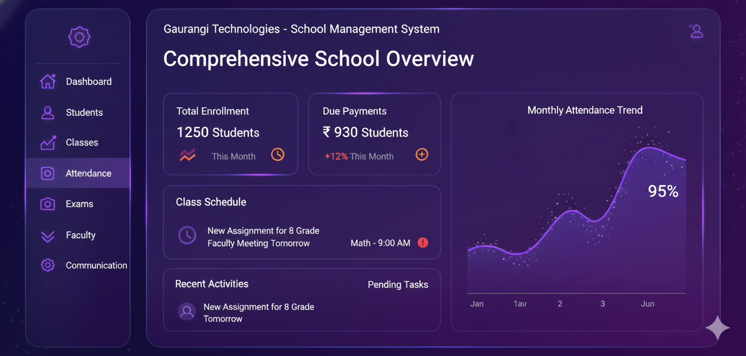 Empower your institution with a comprehensive digital ecosystem designed to unify students, teachers, and administration. Our School Management System simplifies complex workflows, allowing you to focus on what matters most: education.